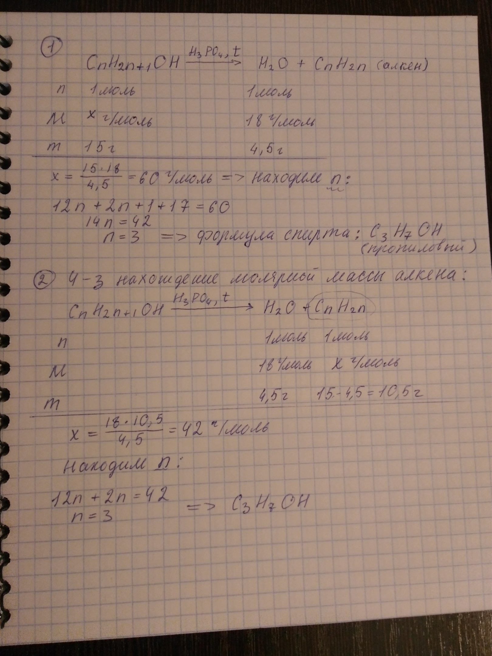 Спирт - пропиловый. Решений 2 - через молярную массу спирта и алкена (продукта реакции).