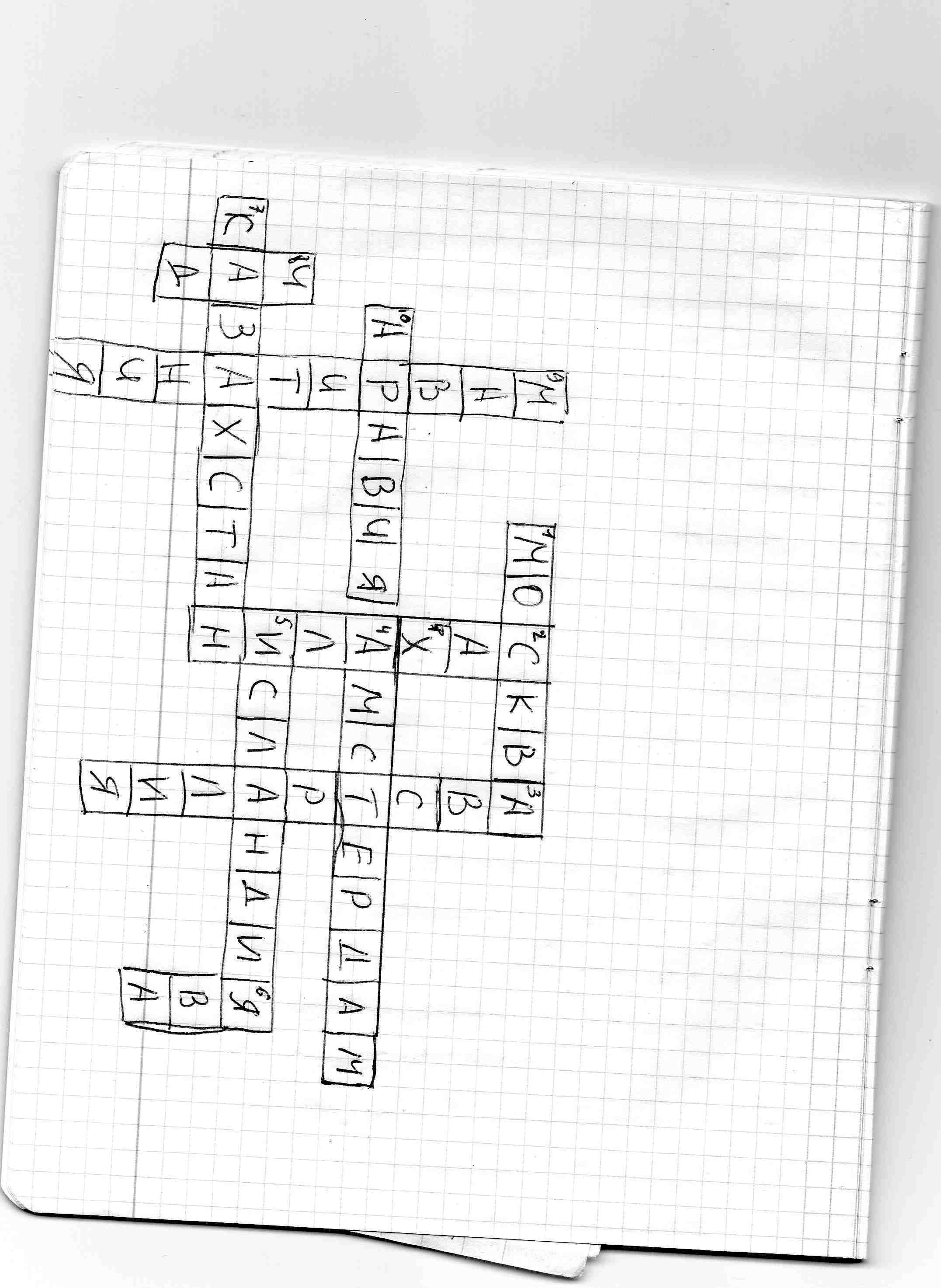 составить кросворд из 10 слов. Например слово в клетках Мадагаскар и вопрос к нему "это остров 20 ю.ш 48 в.д