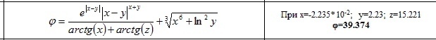 Создать программу вычисления указанной величины. Результат проверить при заданных исходных значениях. Перечень математических функций приведен ниже. C++
