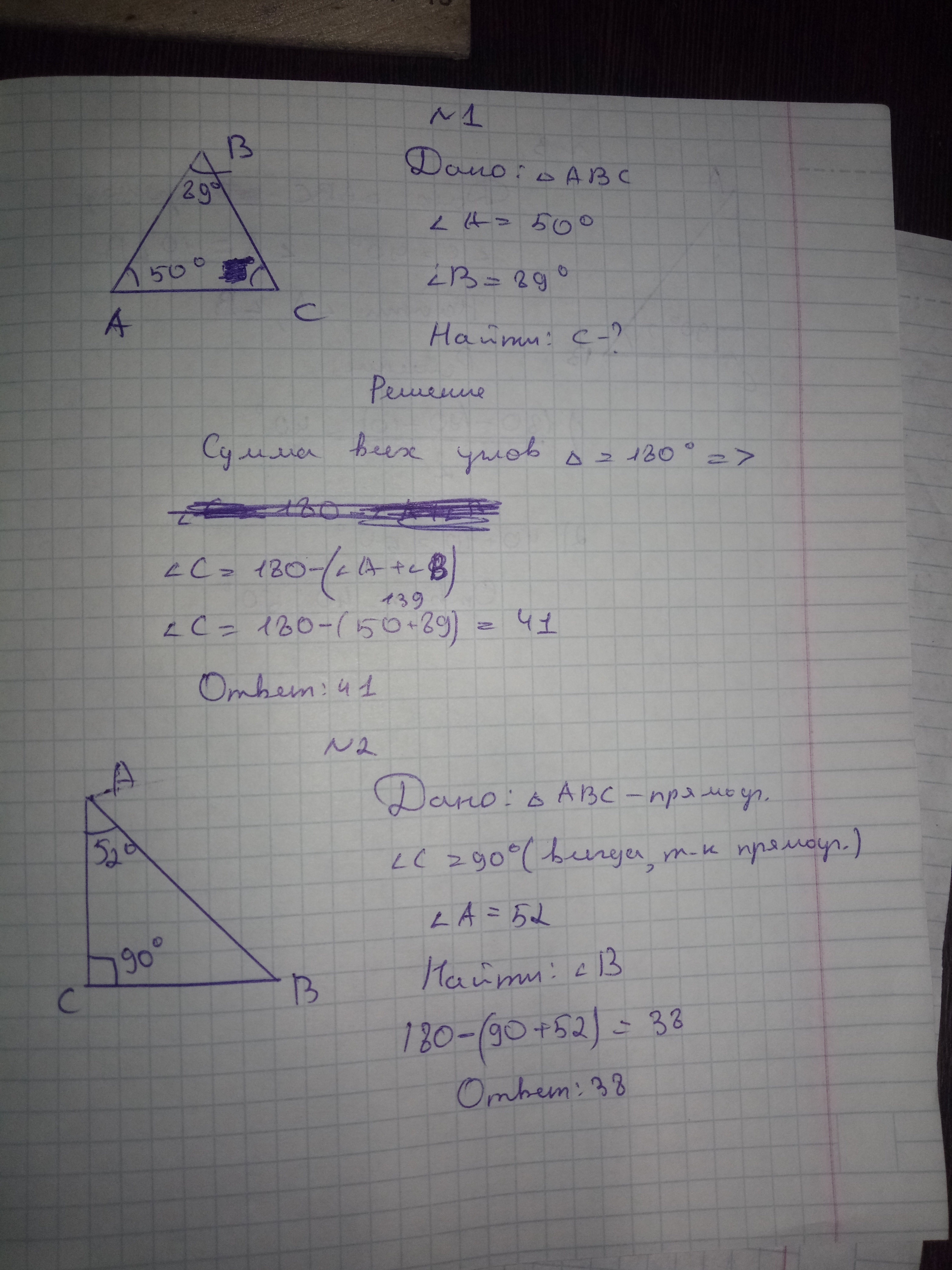 1) угол С = 180°-(89°+50°)=180°-139°=41°
