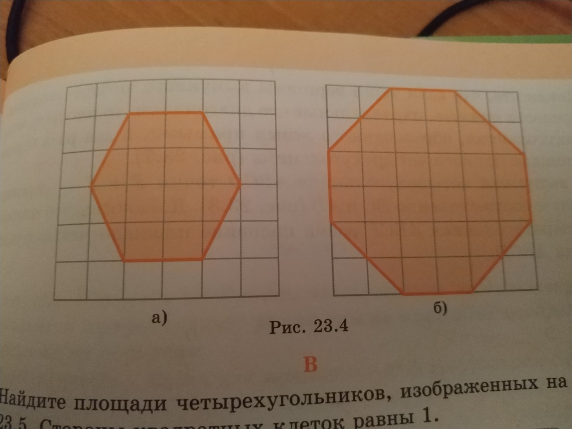 найдите площадь многоугольников изображенных на рисунке 23.4 стороны квадратных клеток равны 1