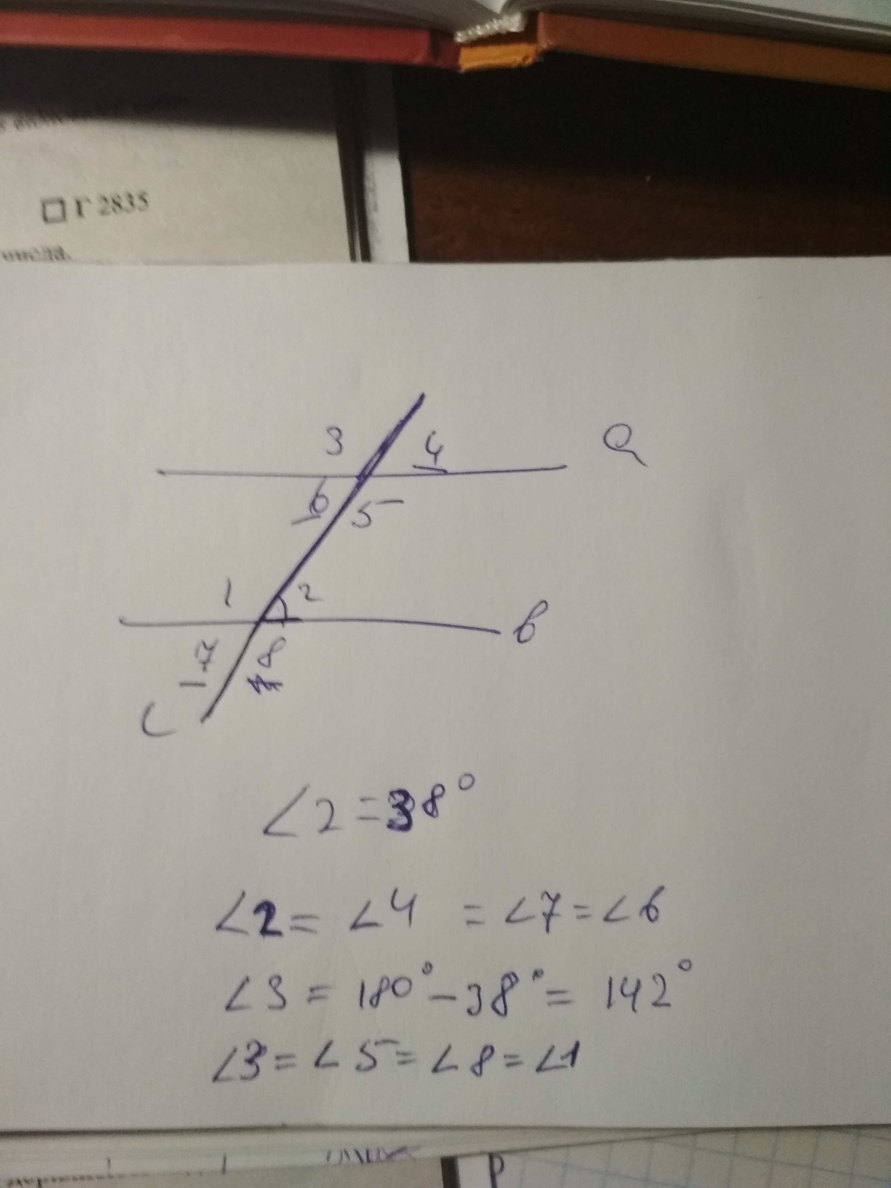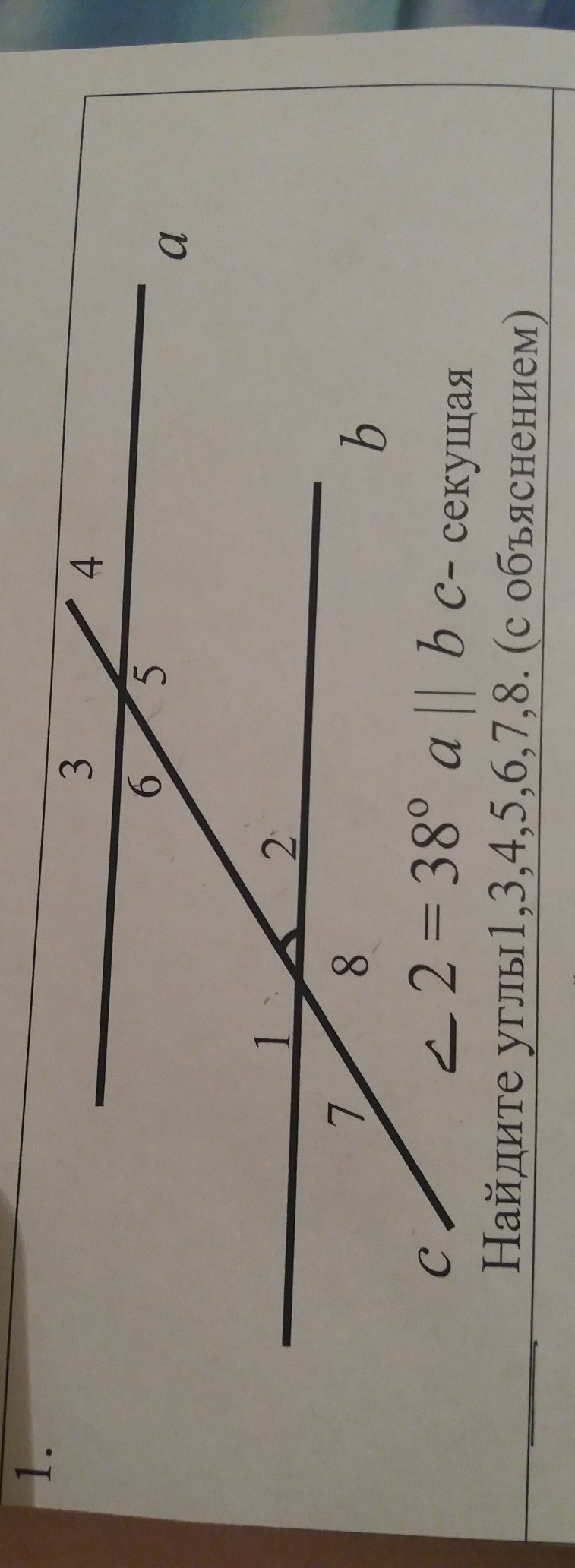 угол 1 = 142° потому что сумма внутренних односторонних углов равна 180°, отсюда угол 1 = 180° - угол 6 (38°)