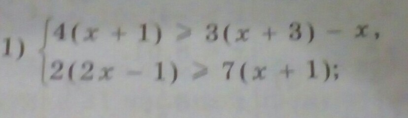 2(2x-1)>>7(x+1) 4x-2>>7x+7 -3x>>9 x<<-3