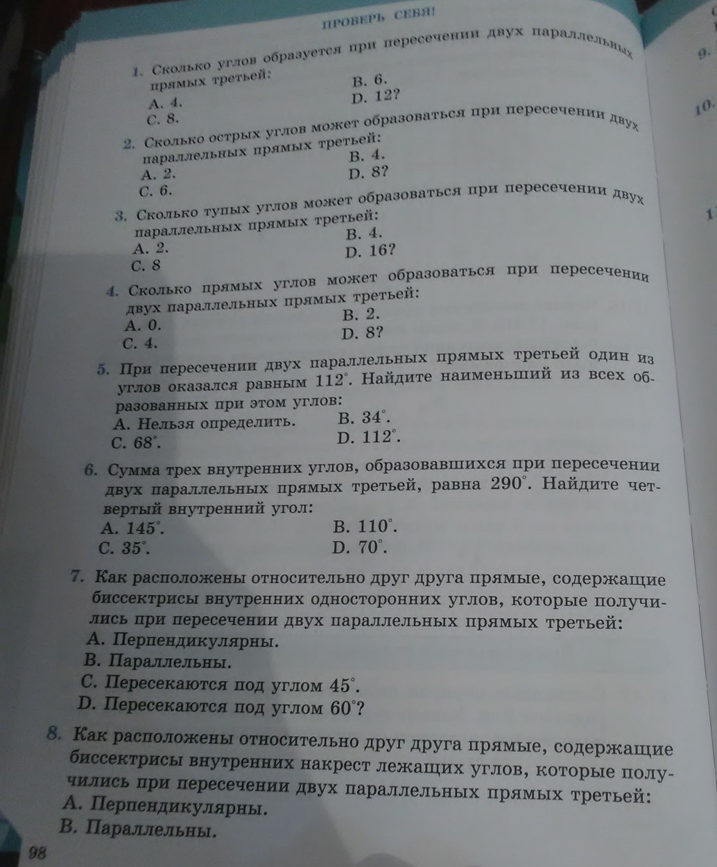 2)БУДЕТ При пересечении двух параллельных прямых секущей образуется 4 равных острых угла: