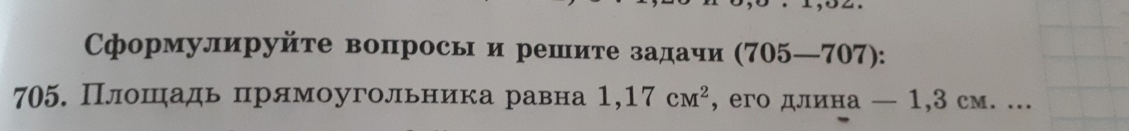 Площадь прямоугольника равна 1,17 см², его длина - 1,3 см. Найти ширину данного прямоугольника.