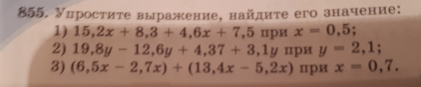 19.8*0.5+15.8=25.7,2)10.3у+4.37при у=2.1 10.3*2.1+4.37=26,3)12х при х=0.7 12*0.7=8.4