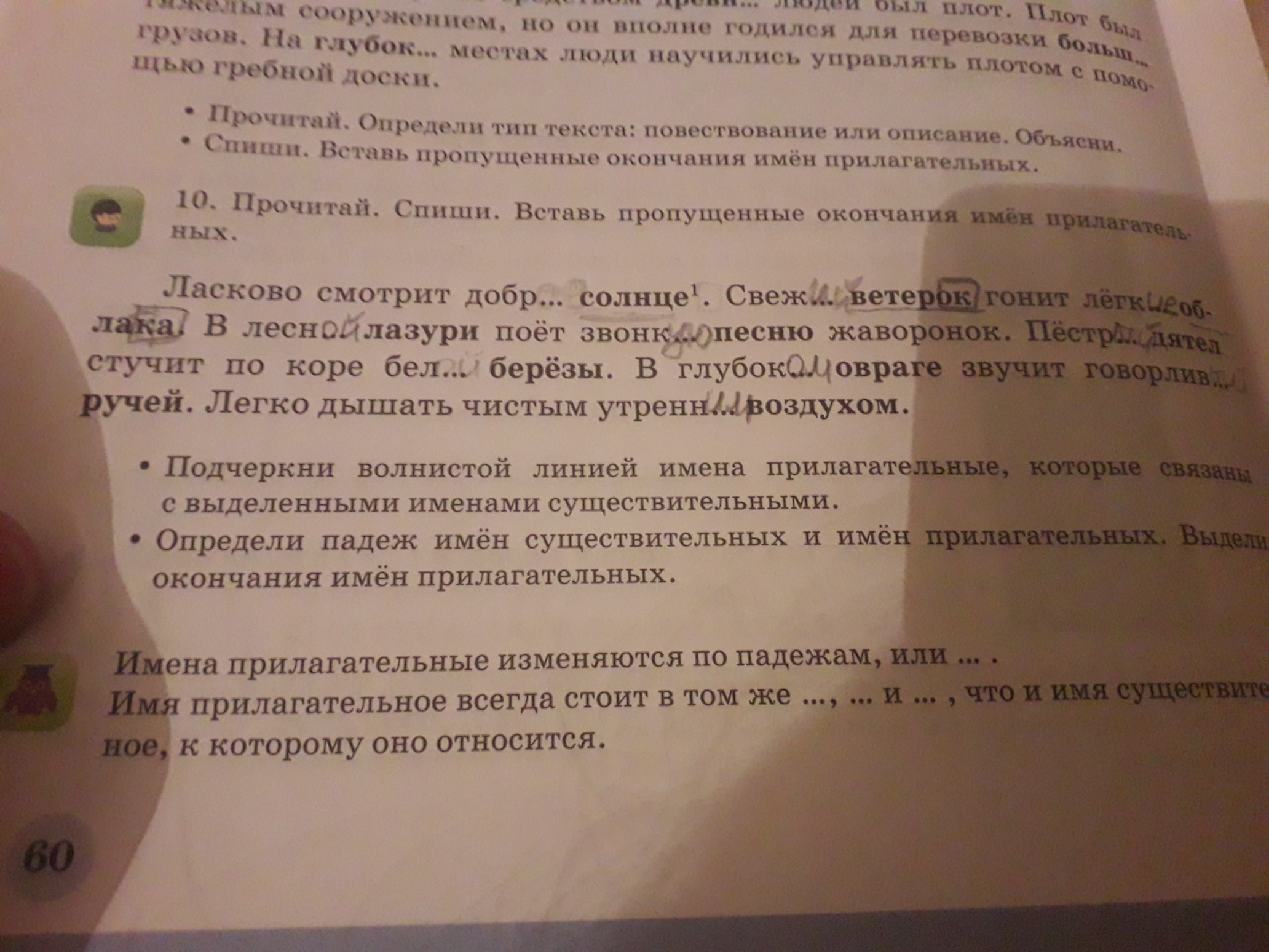 пожалуста помагите подчеркни волнистой линией имена прилагательные которые связаны с выделенными именами существительных Определи падеж имён существительных и имён прилагательных Выдели окончания имён прилагательных