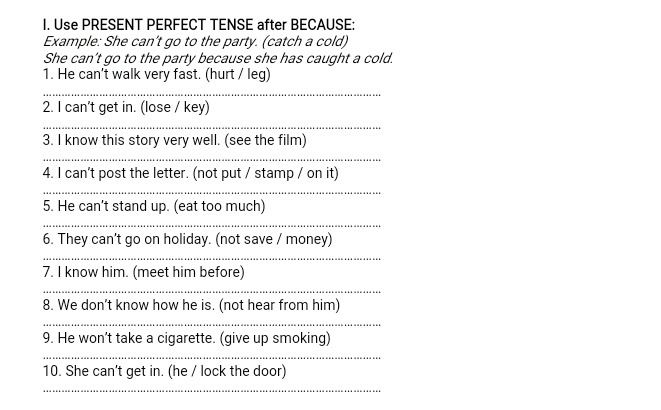 2).I can't get in, because I have lost my key.