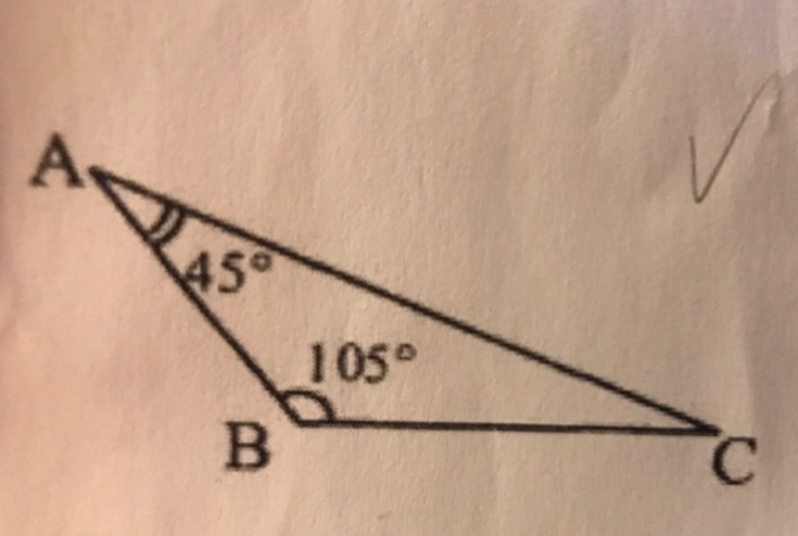 Рассмотрим ΔАВС. ∠С = 180° - ∠А - ∠В = 180° - 45° - 105° = 30°