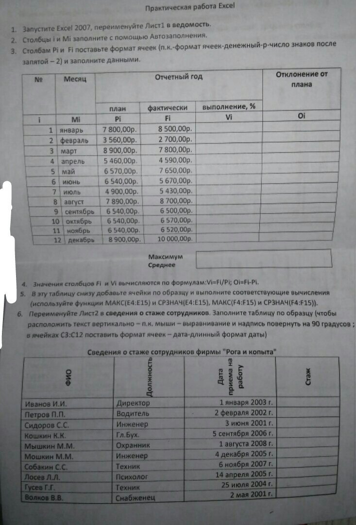 Нужно сделать практические работы в Экселе.