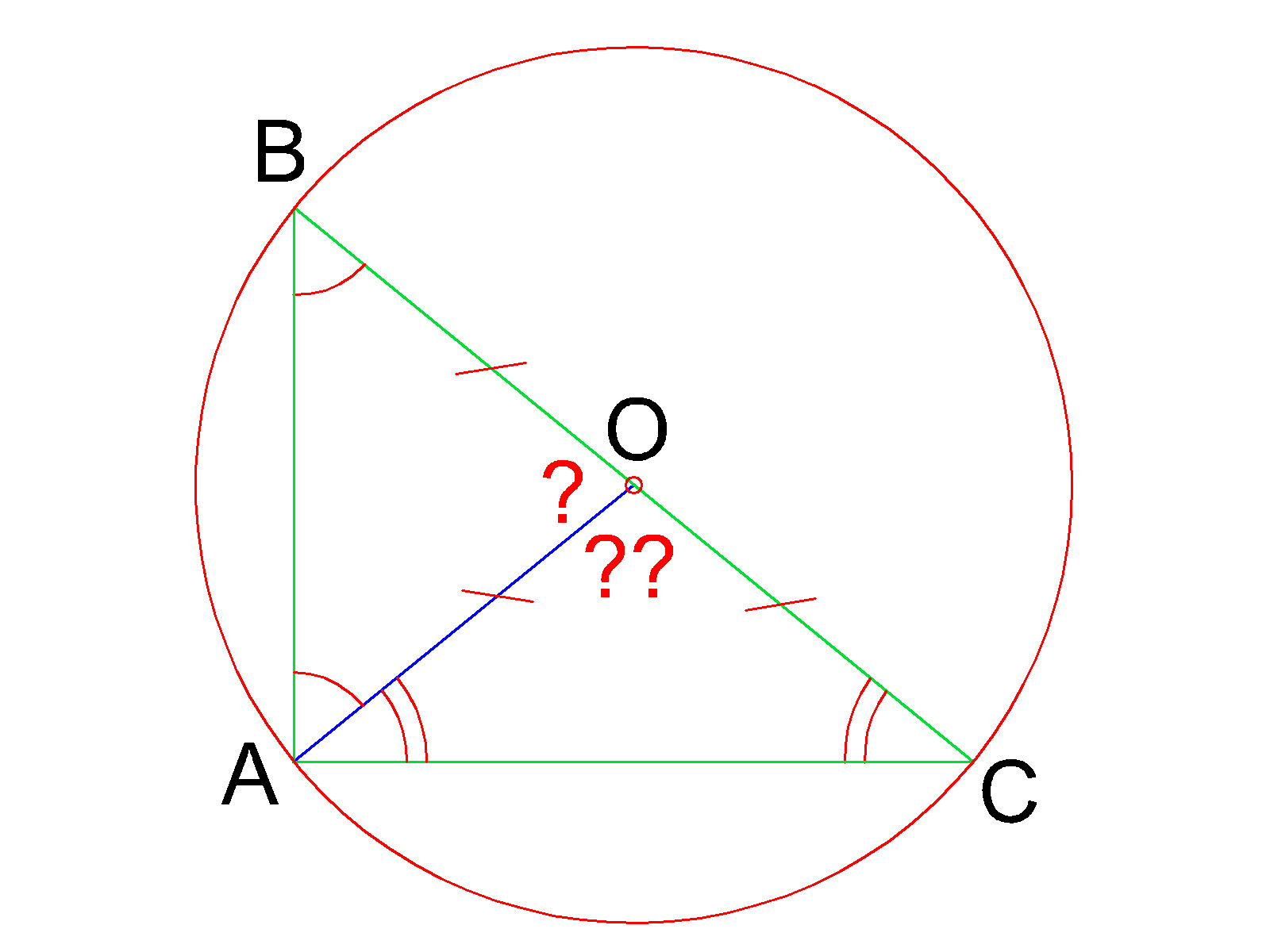 2) Центром описанной около прямоугольного треугольника окружности является середина гипотенузы.