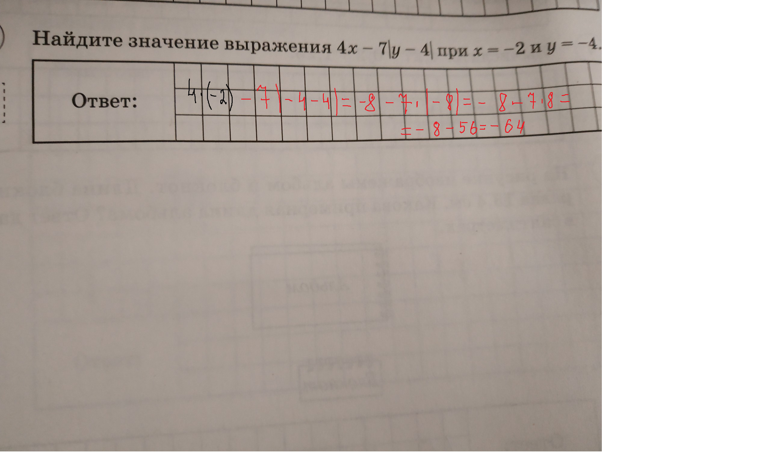 4*(-2)-7*|-4-4|=-8-7*|-8|=-8-7*8=-8-56=-64