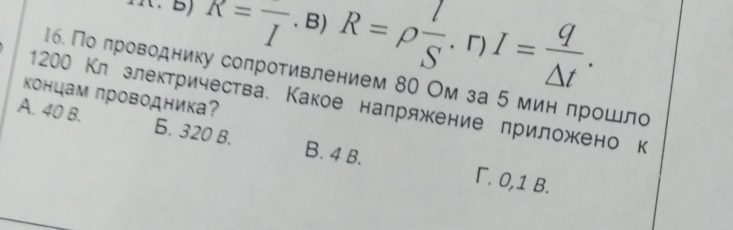 16. По проводнику сопротивлением 80 Ом за 5 мин прошло 1200 Кл электричества. Какое напряжение приложено