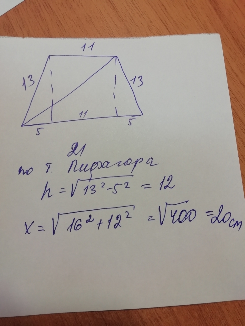смотри фото Диагональ = 20 см. пояснение ниже, H - высота
