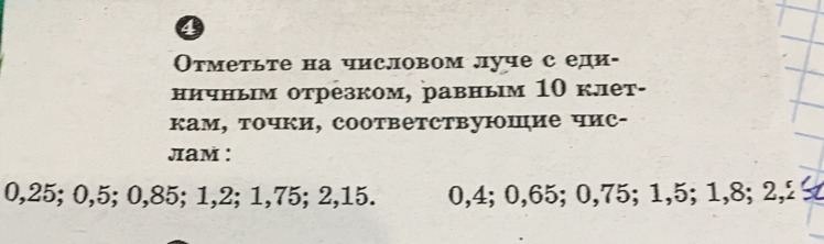 10 клеточек принимаем за 1, тогда 0,25 это будет 2,5 клеточки,