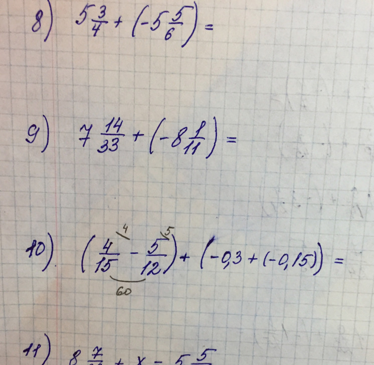 10) (16/60-25/60)+(-3/10-3/20)=-9/60+(-6/20-3/20)=-3/20-9/20=-12/20=-3/5