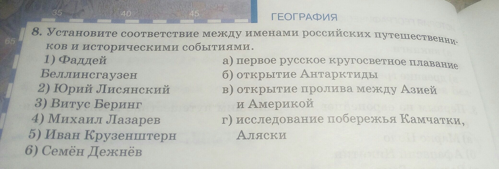 Установите соответствие между именами российских путешественников и историческими событиями.