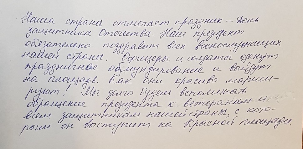 Наша страна отмечает праздник - День защитника Отечества. (президент, офицеры, солдаты, маршировать, Красная площадь, обращение).