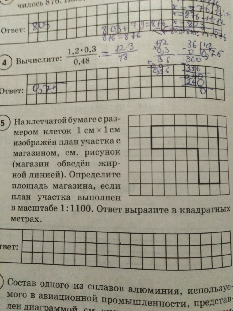 на клетчатой бумаге с размером клеток 1 см * 1 см изображен план участка с магазином см. исунок(магазин обведен жирной линией. Определите площадь магазина, если план участка выполенн в масштабе 1:1100