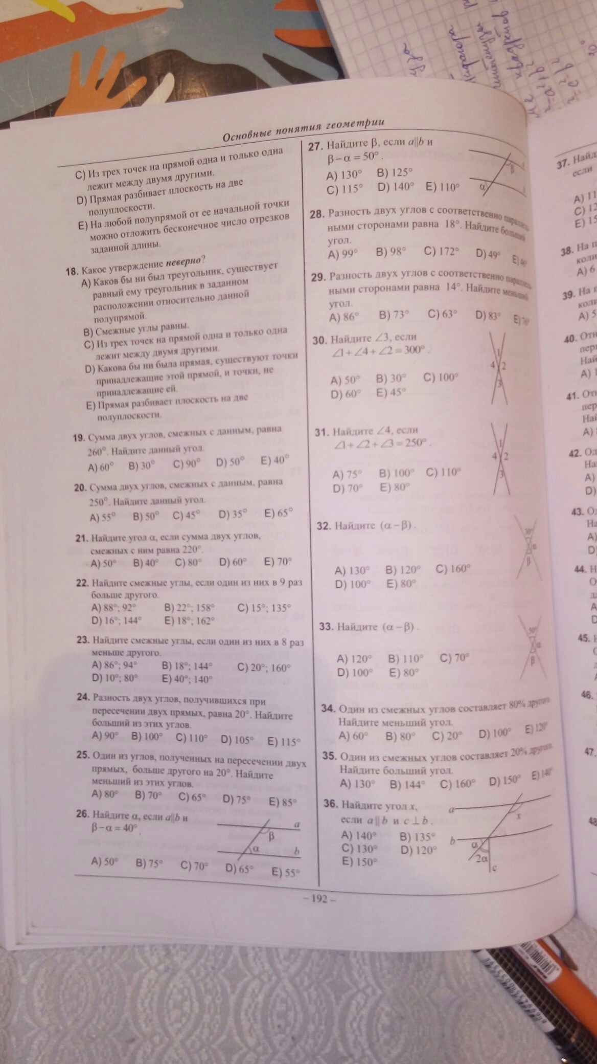 a║b ⇒ α+β=180° (α вертикален одностороннему углу β)