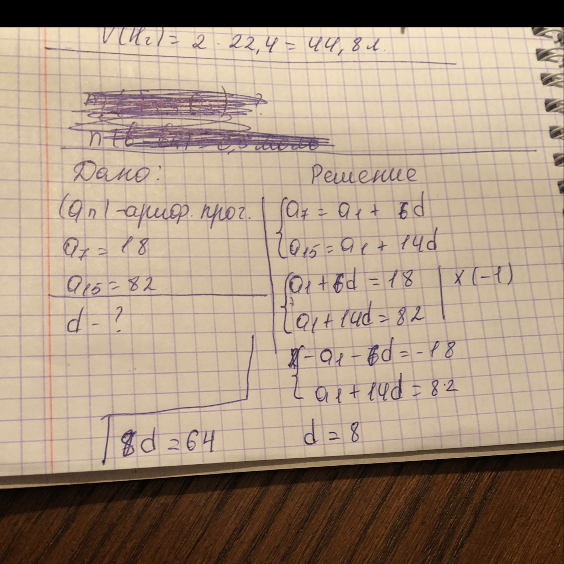 Дана арифметическая прогрессия (an), для которой a7=18, a15=82. Найдите разность прогрессии.