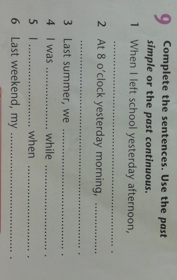 4) doing my homework ... my mum was cooking dinner.