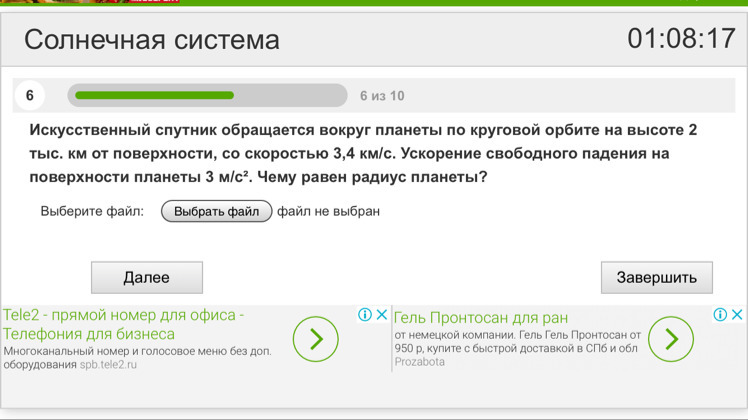 Ускорение свободного падения на поверхности планеты определяется выражением g = G*M/R². Здесь G — гравитационная постоянная. M - масса планеты. Отсюда масса планеты M = g*R²/G. На высоте h ускорение свободного падения равно g(h) = G*M/(R+h)². Это ускорение на высоте h является центростремительным ускорением для спутника, и оно так же равно g(h) = а(ц) = V²/(R+h). Таким образом, можно записать равенство G*M/(R+h)² =V²/(R+h) или G*M/(R+h) =V². Отсюда масса планеты М = V²*(R+h)/G. Приравняв это значение массы и М выраженную через g имеем V²*(R+h)/G = g*R²/G , или V²*(R+h) = g*R². Раскроем скобки и перенесем правую часть уравнения налево. Имеем g*R² - V²*R - V²*h = 0 Решая квадратное уравнение относительно R найдем, что R = 5305825 м или 5305,825 км.