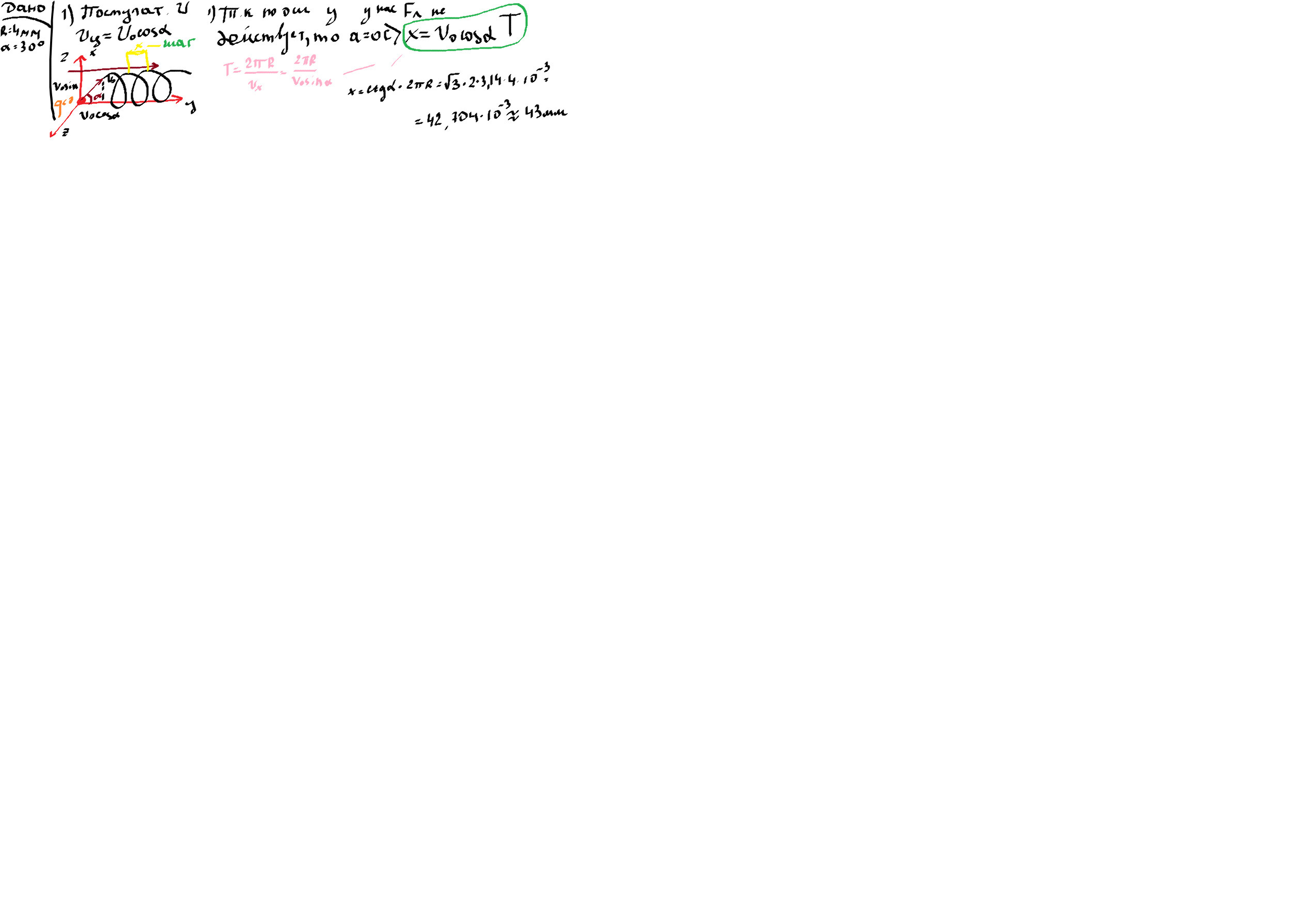 Электрон описывает винтовую линию в магнитном поле с радиусом 4 мм. Найдите шаг винтовой линии, если вектор скорости составляет 30° с вектором магнитной индукции.