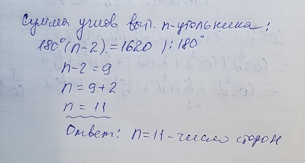 Сумма углов правильного выпуслого многоугольника равна 1620. Найдите число сторон этого многоугольника.