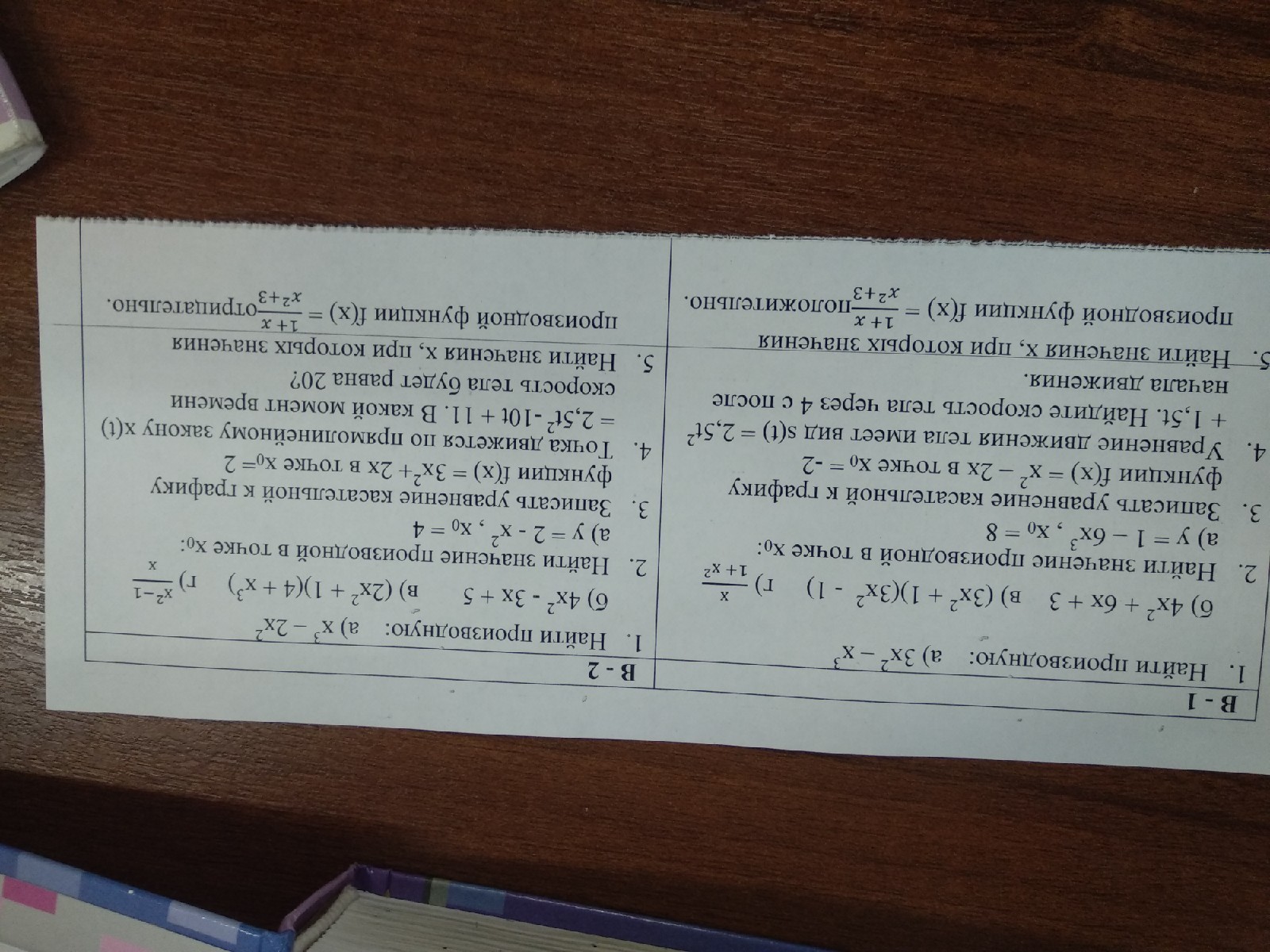 1) a) 6x-3x² б)8x+6 в)(9x⁴-1)'=36x³ г) ((1+x²)-x*2x)/(1+x²)²=(1-x²)/(1+x²)²