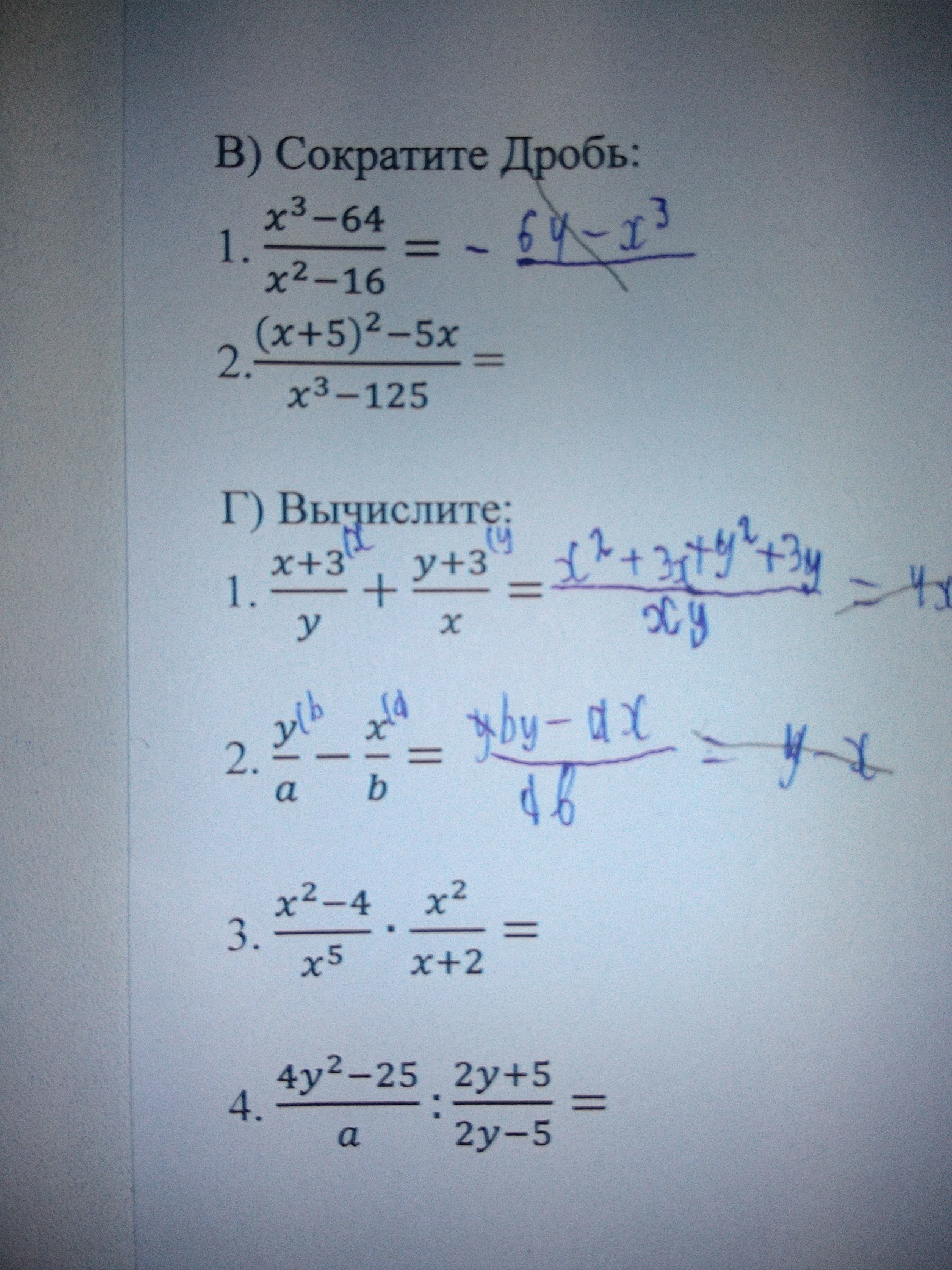 в) 1. (x^3 - 4^3) / (x^2-4^2) =