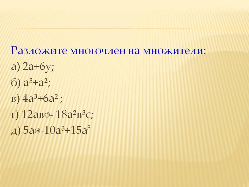 Помогите пожалуйста решить задачку (7 класс): "Разложите многочлен на множители":