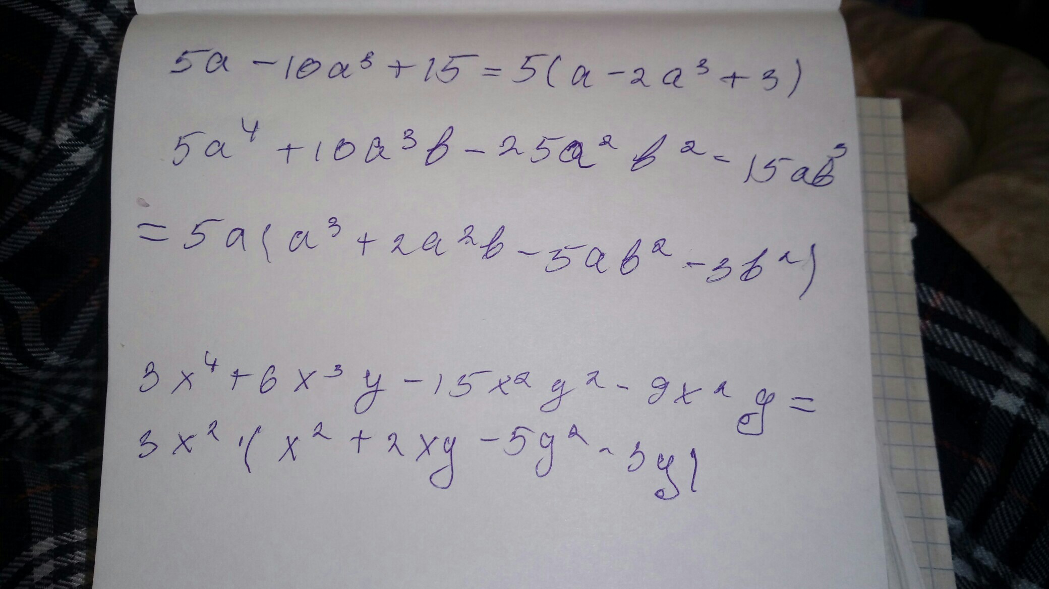 е) 5а4степ.+10а³b-25a²b²-15ab³