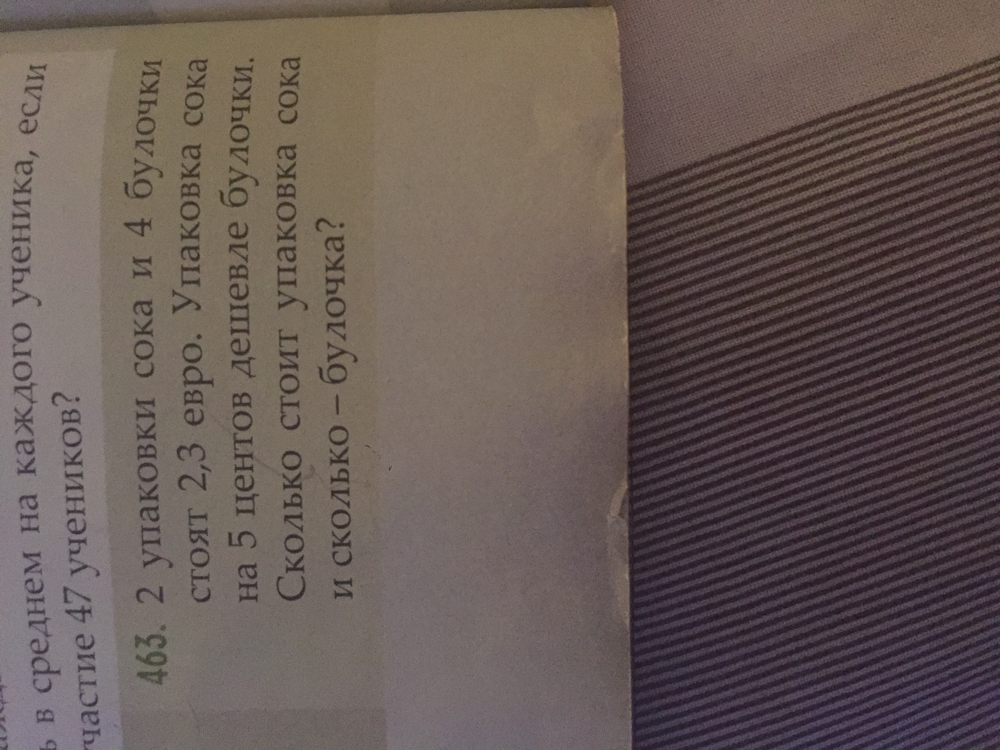 Это решается уравнением. Цена 4-х булочек равно Х+0,05 , а 2-х упаковок сока равно У.