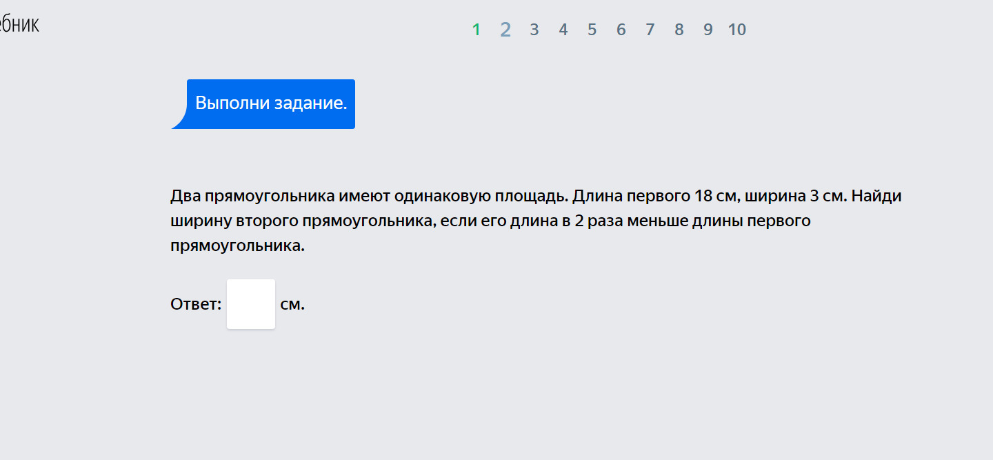 если площадь одинаковая и длина в 2 раза меньше то ширина в 2 раза больше 3*2=6 см