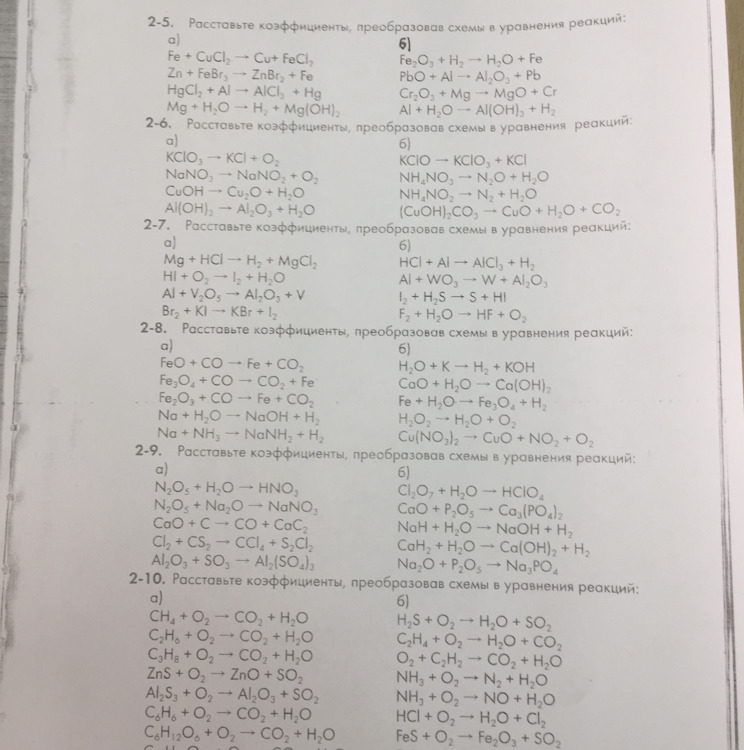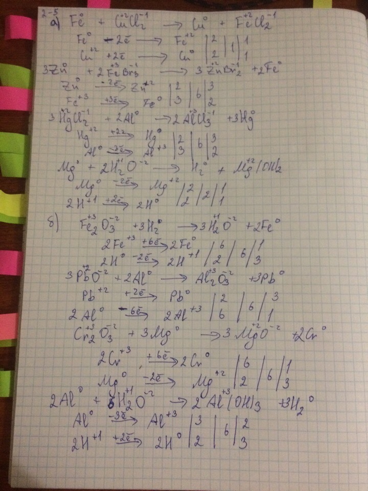 Выписываем ниже эти элементы и видим, что железо отдает 2 электрона (-2е), а медь принимает 2 электрона (+2), поэтому ставим вертикальную черту и напротив элементов пишем кто и сколько принял или отдал электронов. В данном случае получается, что они оба отдали и приняли по 2 электрона. Необходимо теперь найти какое-то общее число, на которое можно умножить или разделить, чтобы сократить. Если мы 2 разделим на 2, то будет 1, поэтому коэффициенты как перед железом, так и перед медью будут равны единице. Теперь смотрим на уравнение и считаем сколько каждого элемента справа и слева (необходимо чтобы их было равное количество). Железа 1 слева и справа так же, меди так же по одному и везде 2 хлора, то есть реакция уравнена. С дальнейшими реакциями точно по такому же принципу. Надеюсь, я смогла помочь вам. Для ознакомления посмотрите видео в интернете на тему окислительно-восстановительные реакции.