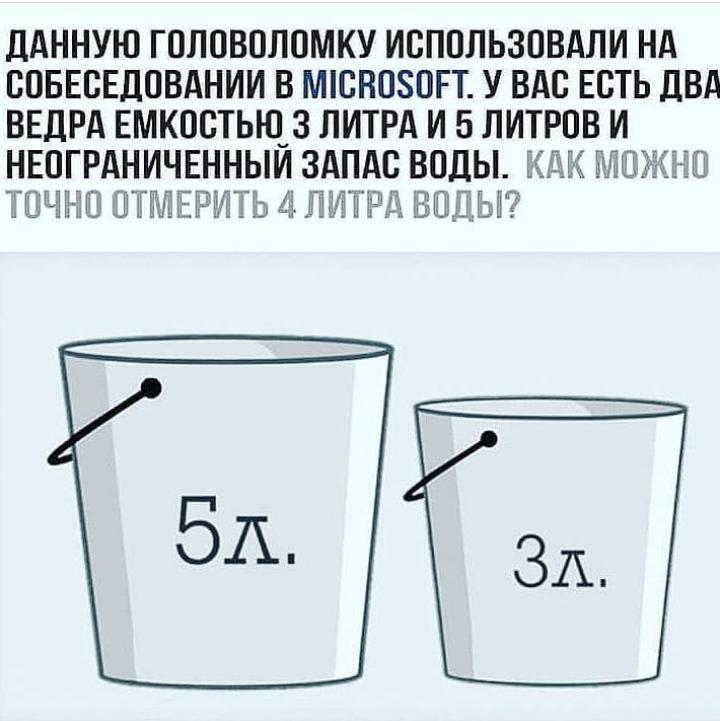 а как можно налить 9литров воды в ведро емкостью 5 литров и 3 литра?
