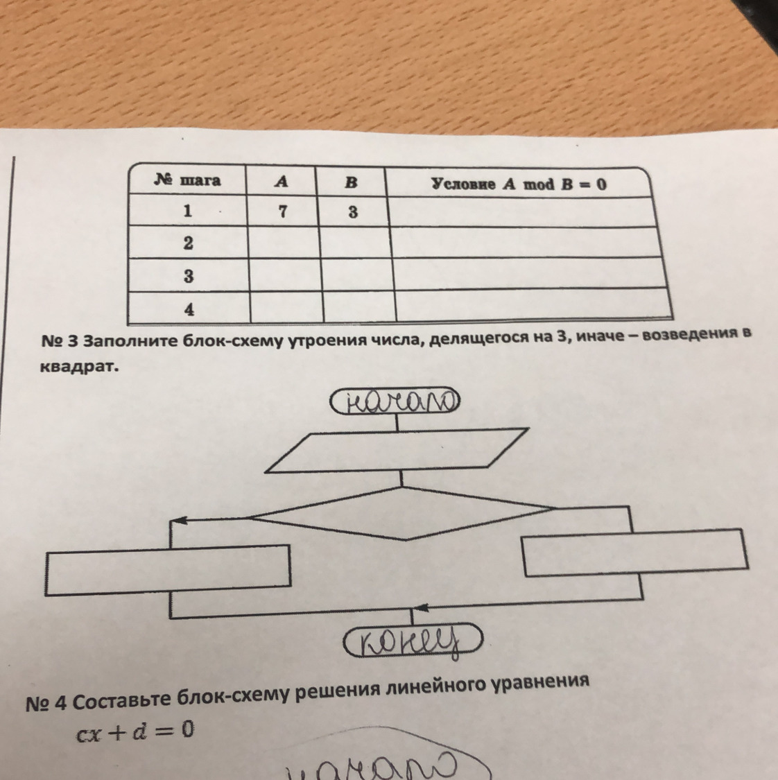 в ромбе условие: а mod 3 = 0 (команда mod выделяет остаток от деления на 3 числа а)