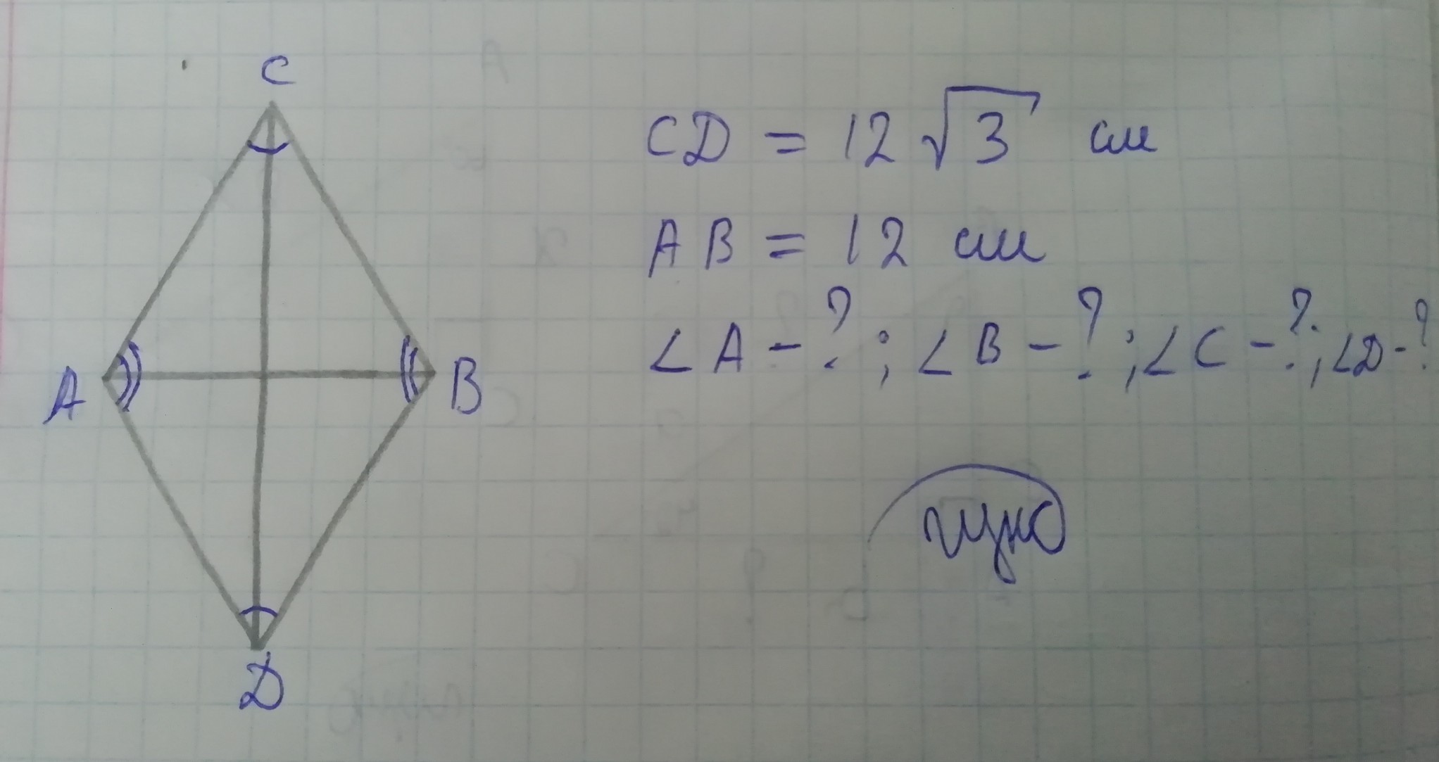 ∠ACB = ∠ADB = 60° (в ромбе противоположные углы равны)