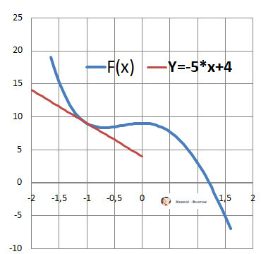 Yk = -5*x+4 - уравнение - ОТВЕТ