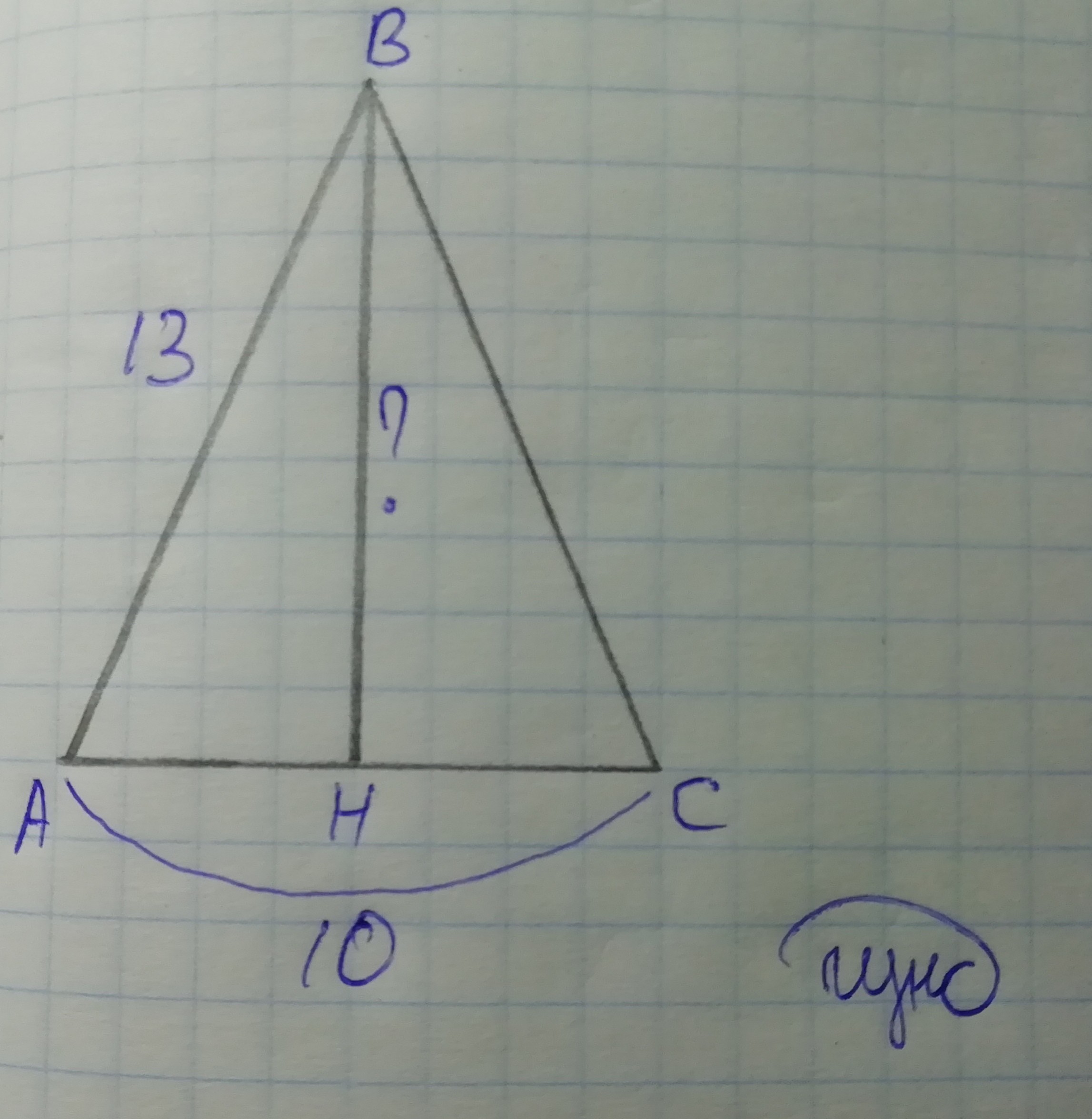 В равнобедренном треугольнике боковая сторона равна 13, а основание 10. Найдите высоту треугольника.