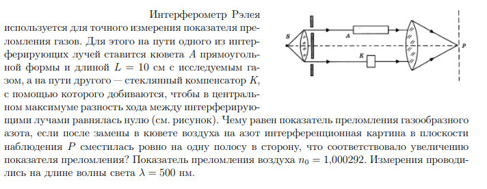 n=n0+lambda/L=1,000292+500e-9/0,1 = 1,000297 - это ответ