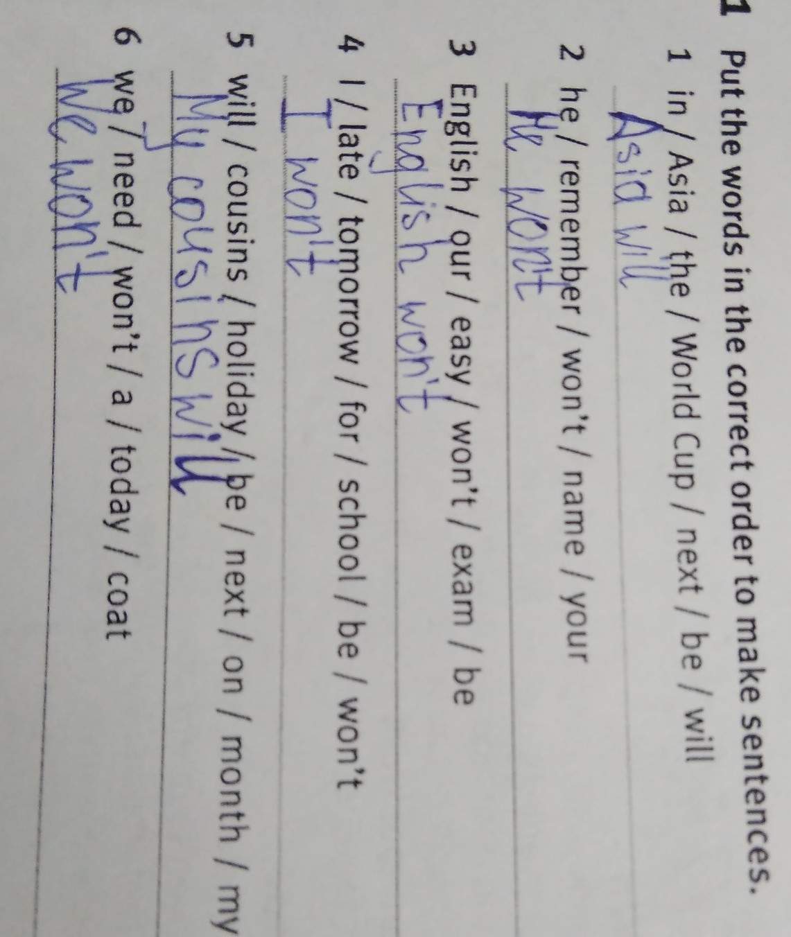 4. I won't be late for school tomorrow