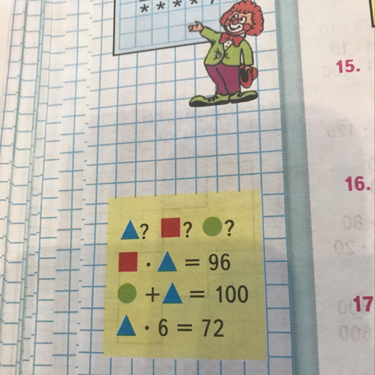 Треугольник - 72 / 6=12 Круг 100-12=88 квадрат 96: 12=8