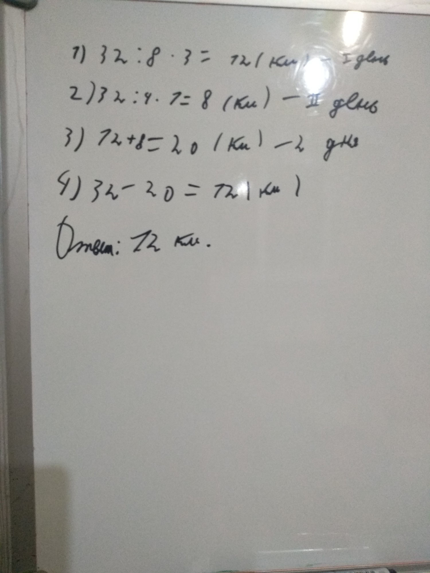 Турист прошел за три дня 32 км.В первый день он прошел 3/8 пути, во второй день 1/4 пути. Сколько километров пути прошел турист в третий день?