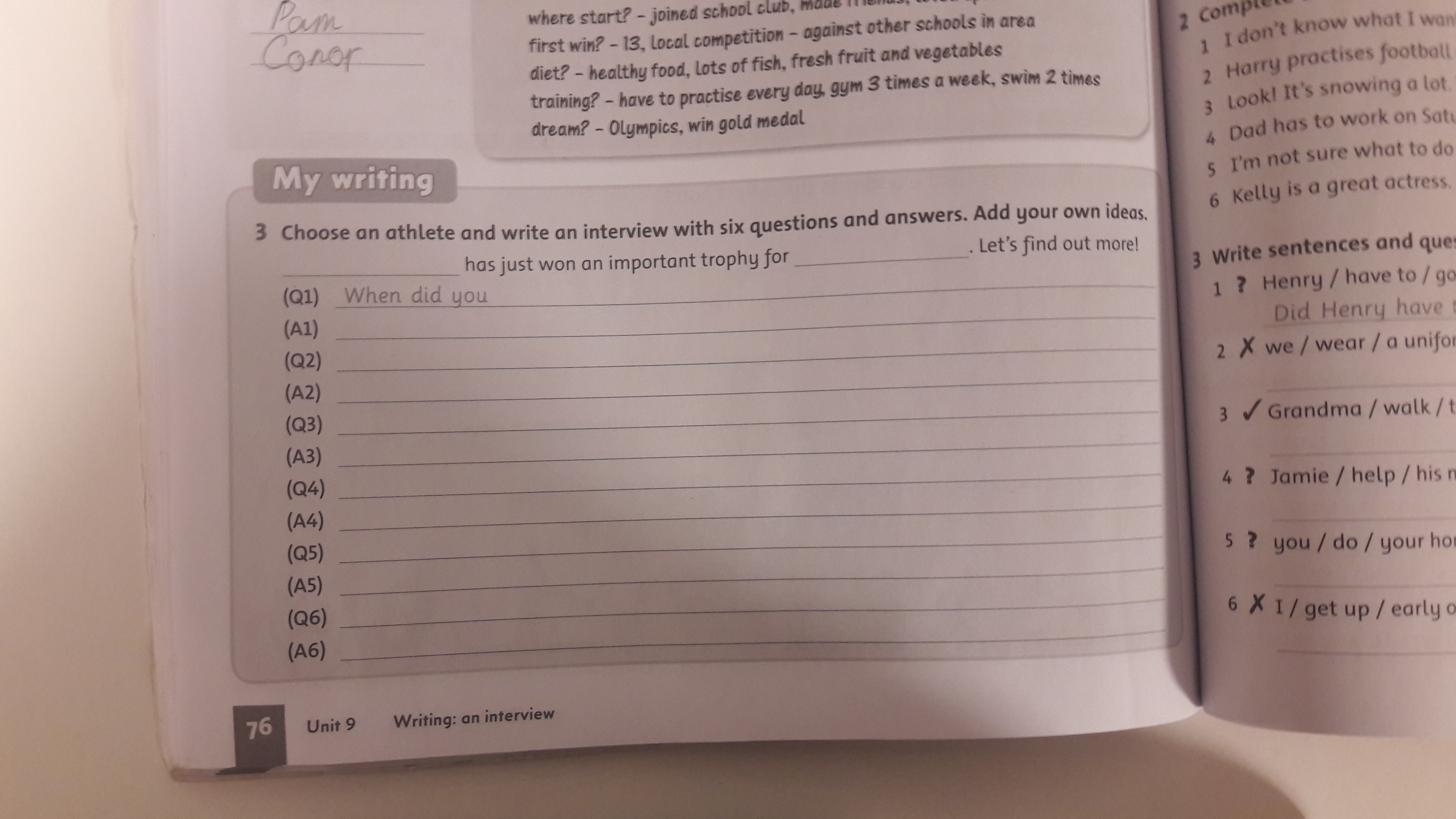 -Yes, I like swimming and cooking.