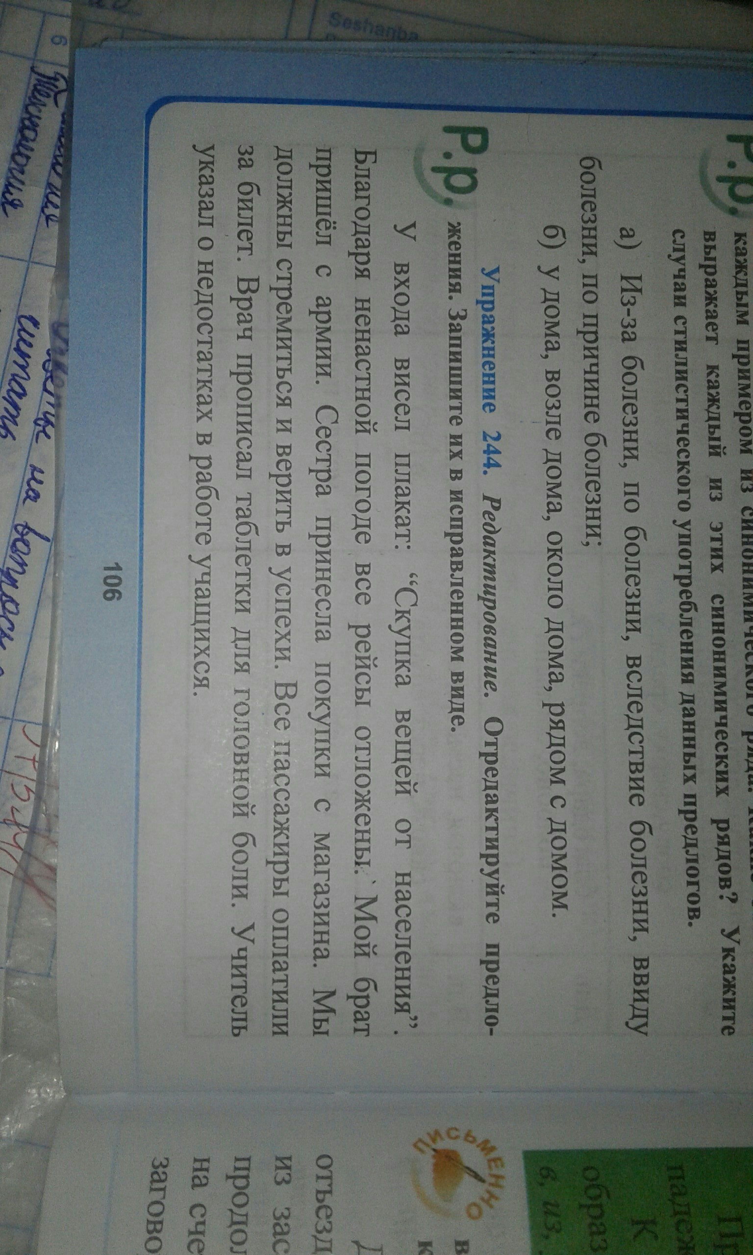 У входа висел плакат: "Скупка вещей". Все рейсы отложены, благодаря ненастной погоде. Мой брат пришел с войны. Сестра принесла покупки из магазина. Мы должны стремиться, и верить в успехи. Все пассажиры оплатили билет. Врач прописал таблетки от головной боли. Учитель, в работе учащихся, указал о недостатках.