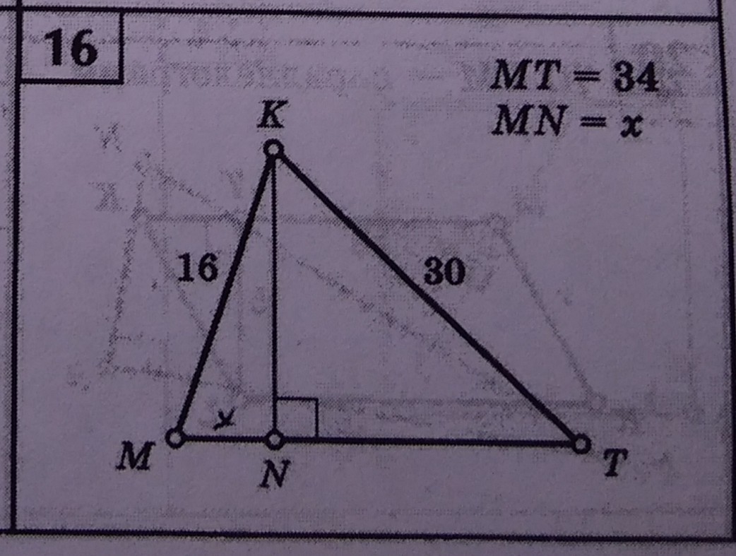 16²-x²=30²-(34-x)² (это уже треуг KNT)