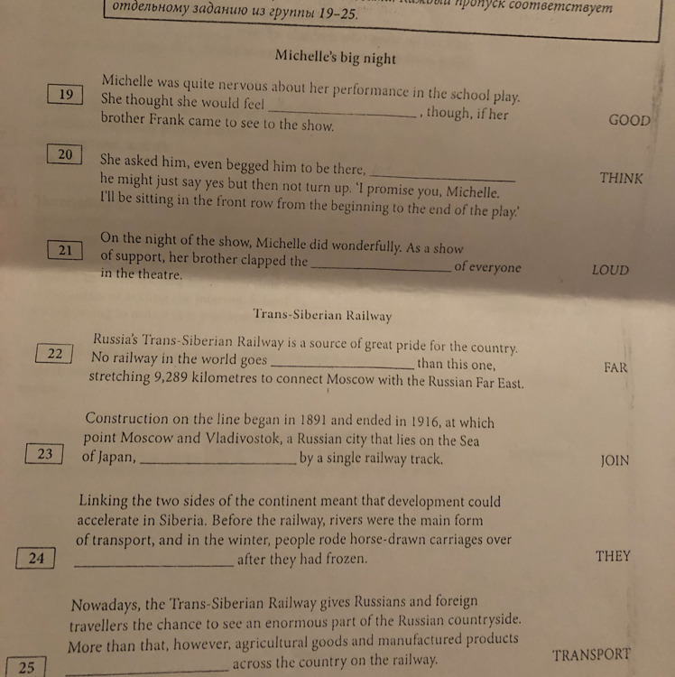 19 better 20 thinking 21 loudest 22 farther 23 were joined 24 them 25 are transported