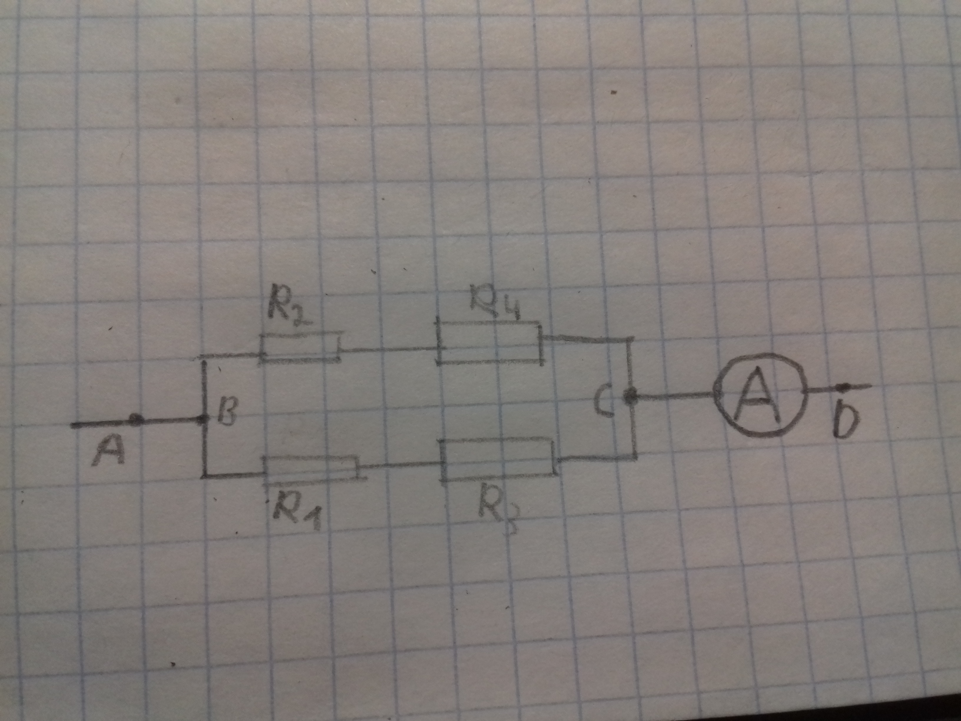Ток в ветви 2, 4 равен U/R = (20/7)/4 = 20/28 = 10/14 A,